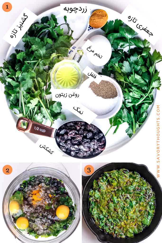 کوکو سبزی – غذای ایرانی –به عنوان پیش غذا یا غذای اصلی سرو می شود. کوکو یا کوکو سبزی یکی از غذاهای ایرانی است که باید امتحان کنید. یک دستورغذای سالم ایرانی که با سبزی های تازه، تخم مرغ، کشمش و آجیل مخلوط شده است. یک دستور غذای خوشمزه، یک غذای مدیترانه ای که باید در فهرست دستورات غذای خود داشته باشید