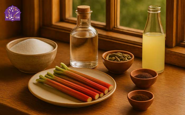 مواد لازم برای تهیه مربای ریواس (برای حدود ۵۰۰ گرم مربا)